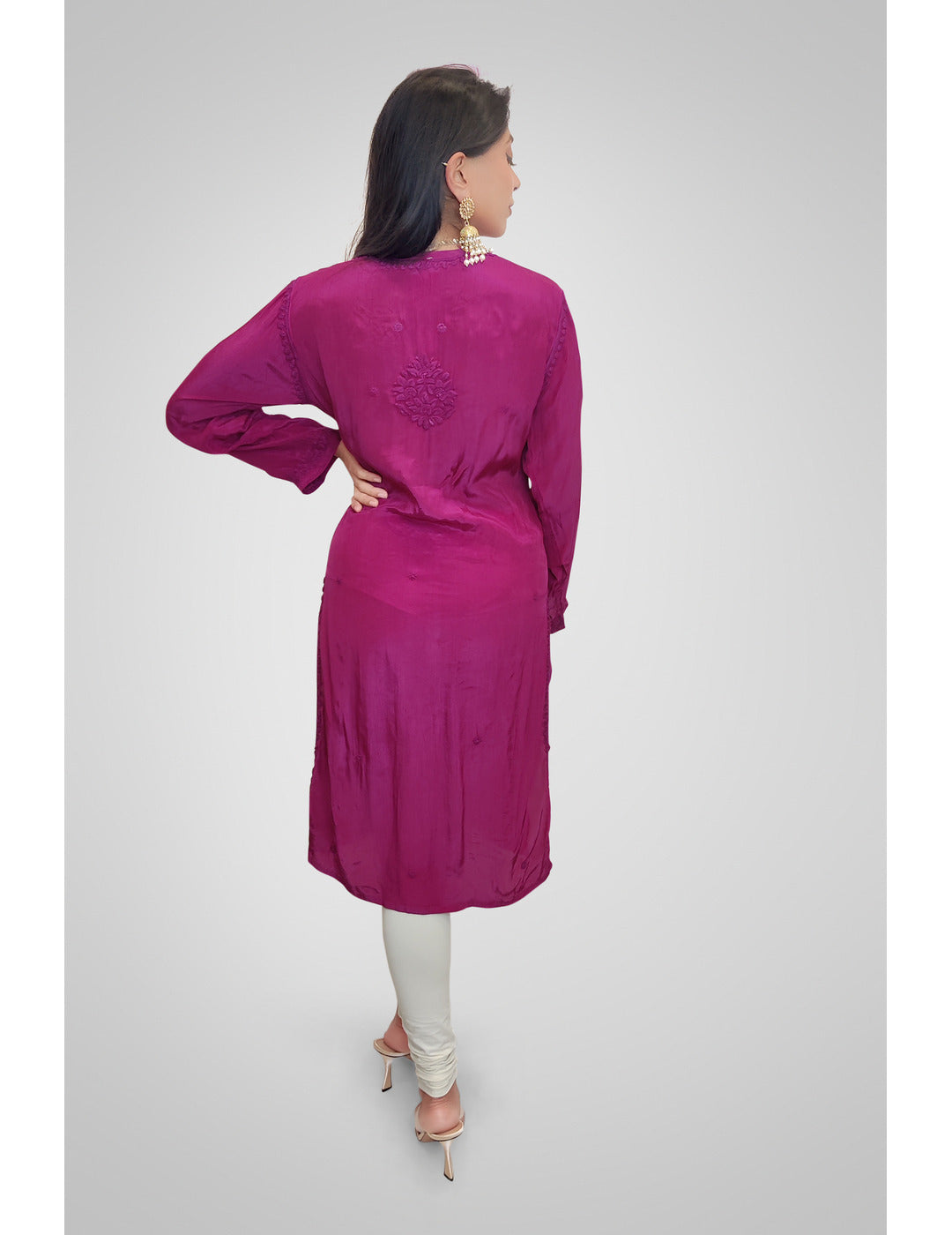 Description: Breathable cotton silk fabric kurta. The kurta is adorned with exquisite hand-embroidered designs on the front, back, and sleeves