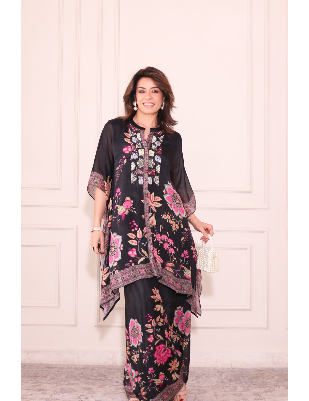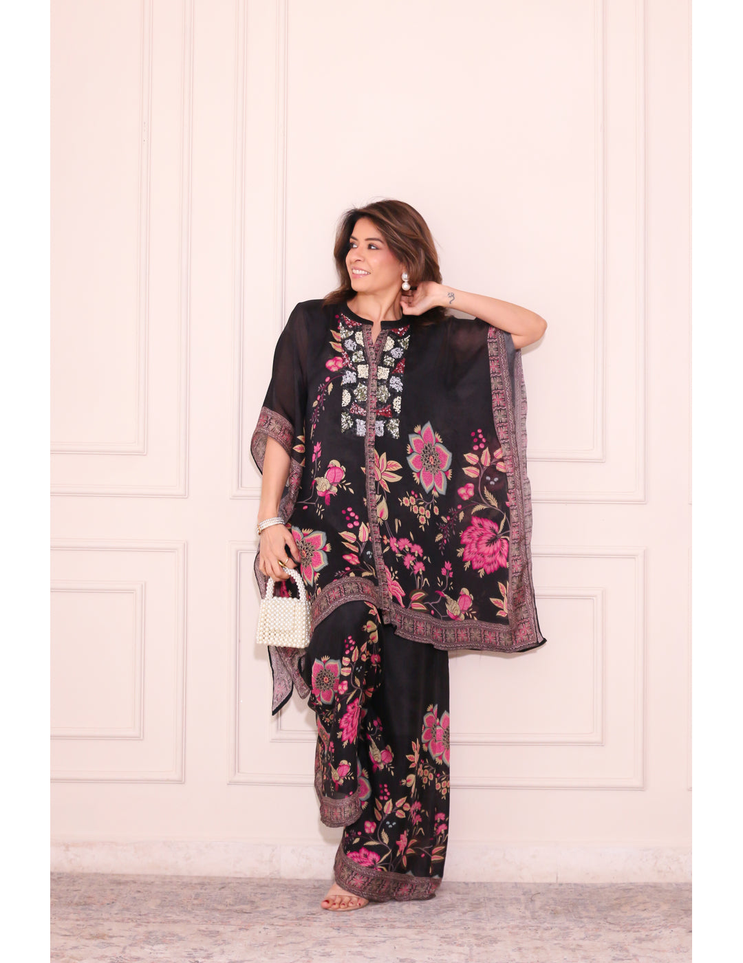 Black Floral Kaftan Co-ord Set