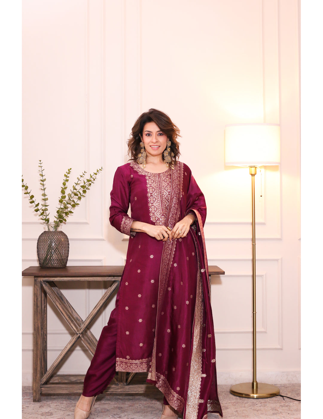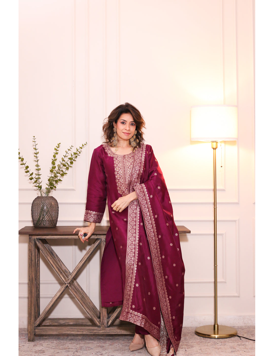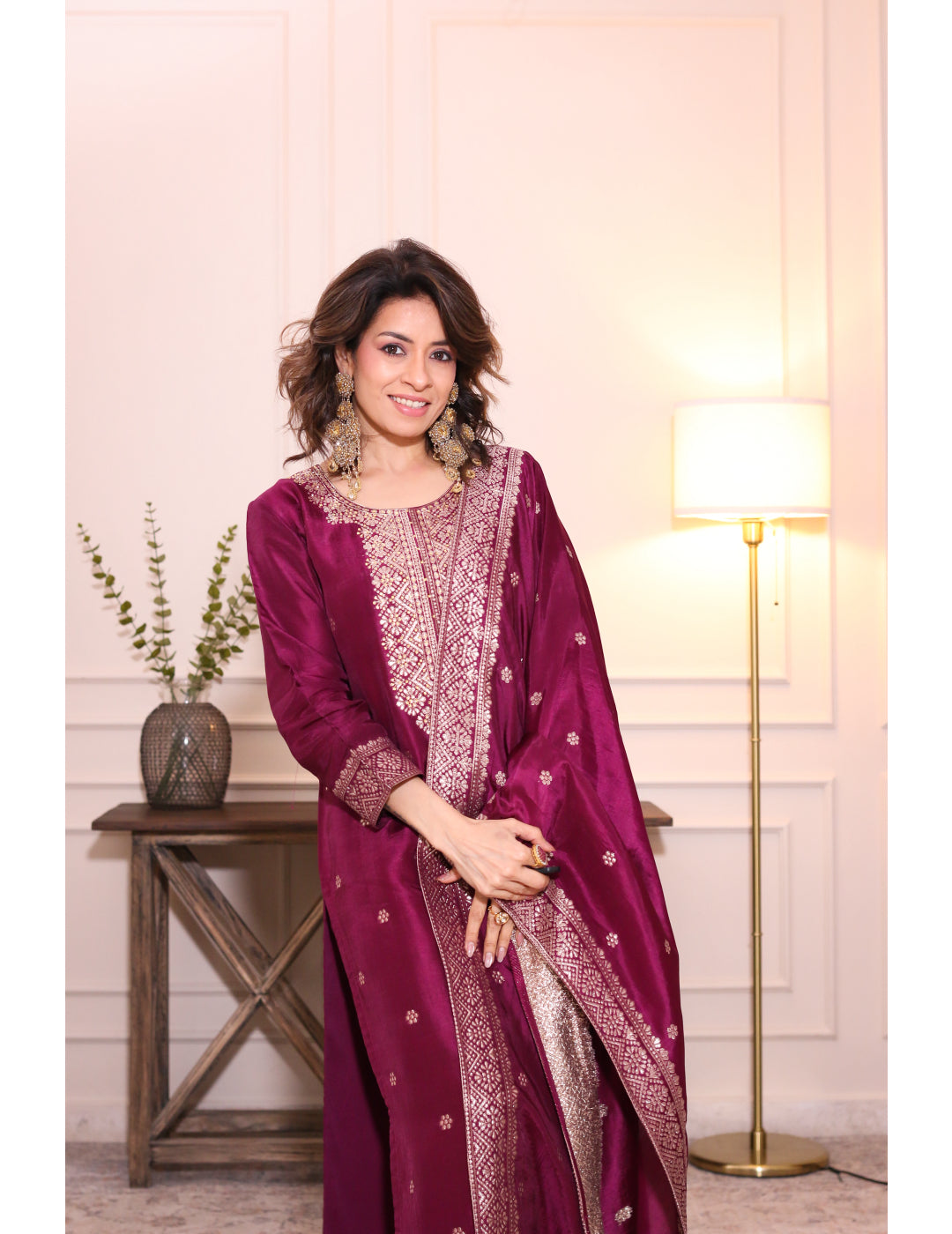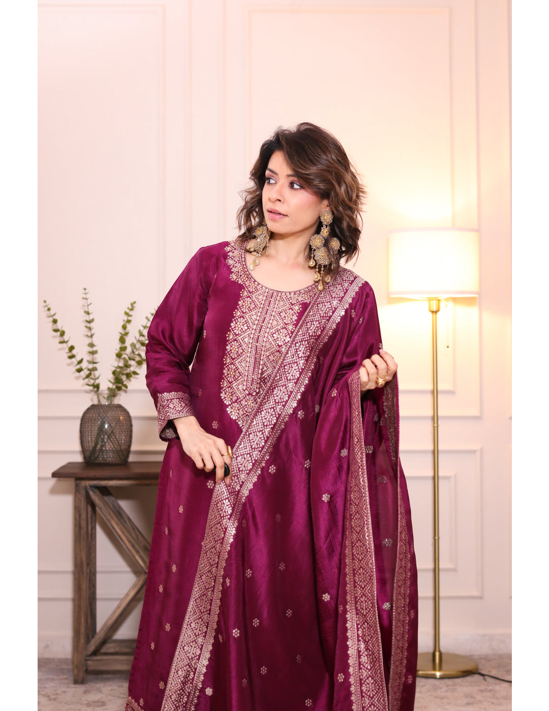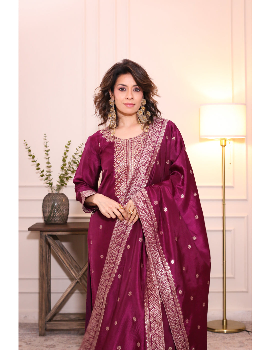 Zarmina Wine Brocade Silk Kurta Set