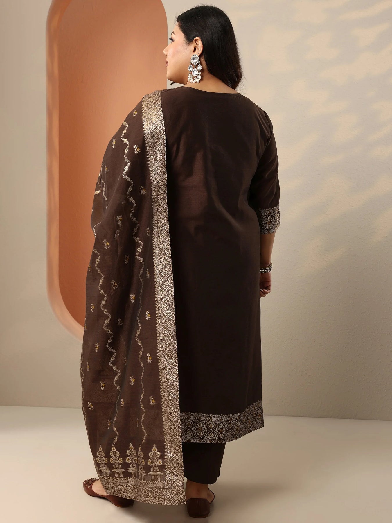 Description : Our 3-piece brown silk blend straight-fit kurta set features a round neckline, regular sleeves, and statement yoke. Complemented with straight pants with a partially elasticated waistband, and an Self Design dupatta. Adorned with ethnic motifs self design accents, this style is perfect for festive occasions.