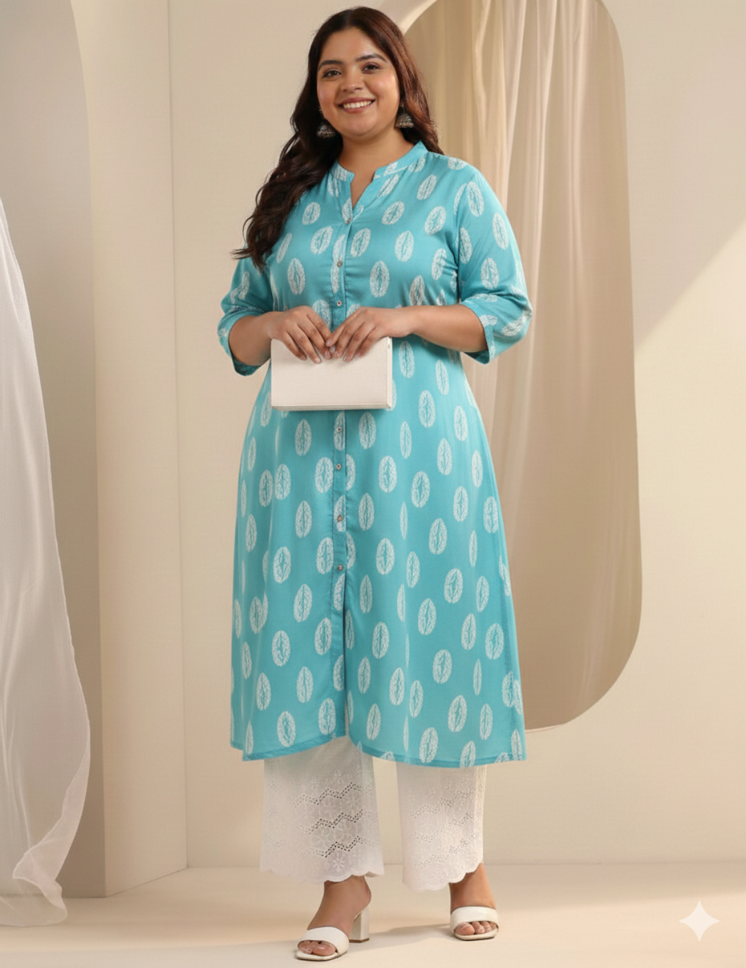 描述:采用印花 A 字形kurti,圆领,七分袖,常规袖子。非常时尚舒适。非常适合办公室穿着。