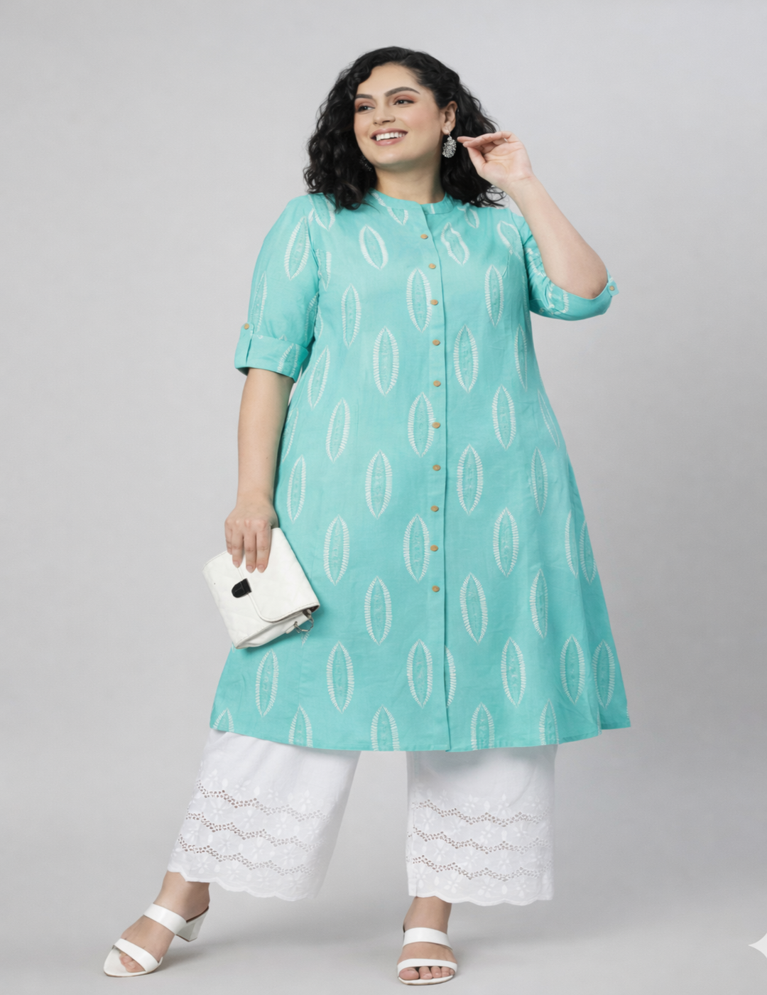 造型技巧: 搭配莱卡紧身裤或 Chikankari Palazzo。
