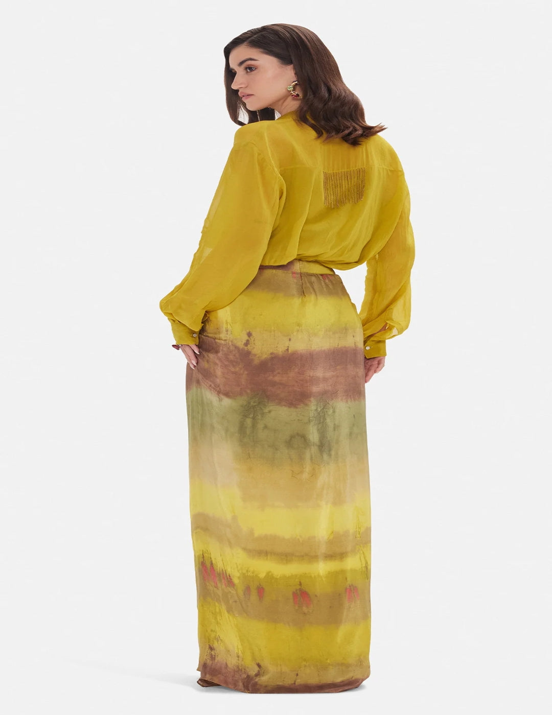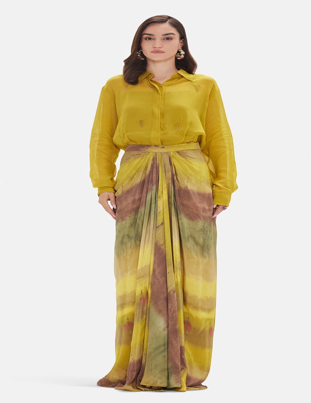 Comes With: 2 pieces | Shirt & Draped Skirt