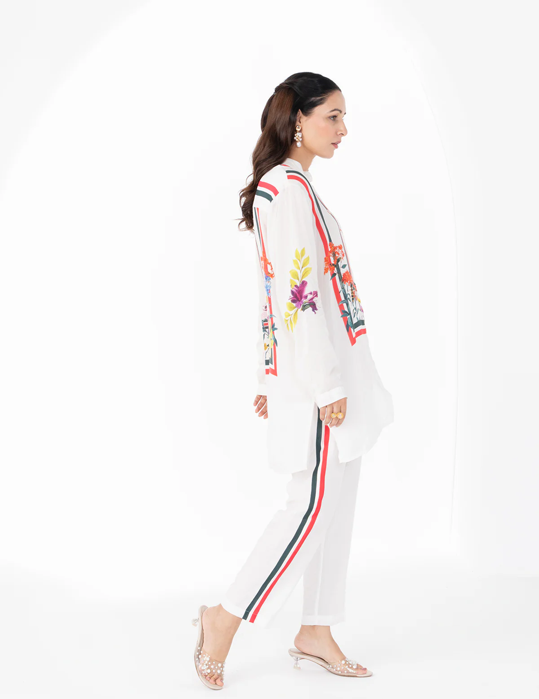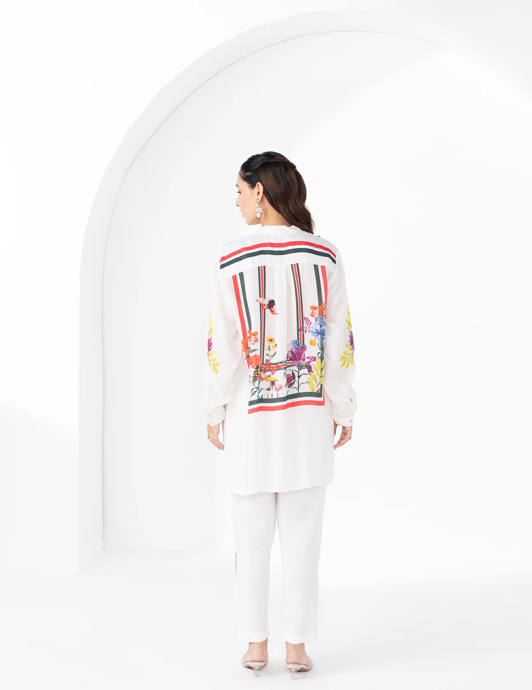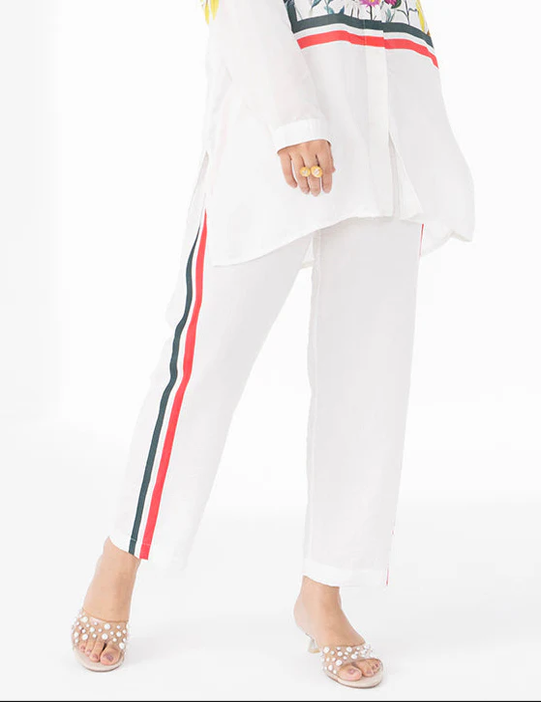 Description: Elegant striped pants in a soothing white tone, designed to bring together effortless style and comfort. The relaxed silhouette and breathable fabric allow graceful movement, making them a versatile choice for everyday chic dressing.